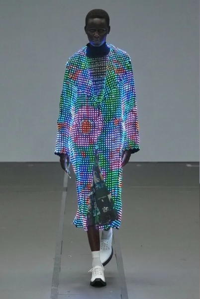 Agora preciso ser honesta com você. Parte do que desfila em Paris não foi feito para chegar ao armário de ninguém: foi feito para gerar narrativa, provocar debate e posicionar a marca. As telas de LED embutidas na roupa da ANREALAGE, as roupas usadas de cabeça para baixo como conceito fashion, a exposição de barriga no inverno como provocação estética… tudo isso é legítimo artisticamente. Mas não é o que sua cliente vai usar.